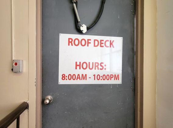 Enjoy a full suite of amenities including a 24-hour doorman, rooftop terrace, on-site library/recreation room, laundry on every floor, and a landscaped courtyard with play area. Garage parking is available for an additional fee.